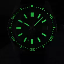 - Luminous Effect: Full SLN C3 luminous coating on the hands and markers provides exceptional visibility in low light or dark conditions. The green glow ensures you’ll always have time at hand, even underwater.