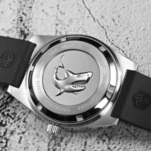 - Additional Features: The screw-down crown with a 3D shark logo, screw-down case back with a deep press pattern, and 3D San Martin applique logo add subtle, sophisticated details to the overall design.