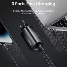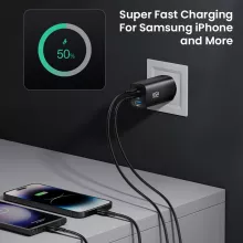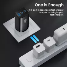 - Multi-Port Design: Charge up to three devices at once with two USB-C and one USB-A port.