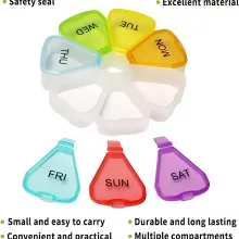 Crafted from high-quality, food-grade PP plastic, this pill case is safe, non-toxic, and odorless. It’s sturdy enough to resist daily wear and tear, while remaining lightweight and small enough to fit in a handbag, travel pouch, or even your pocket. The round design features seven separate compartments, each labeled for one day of the week, so you can easily sort your doses and stay organized without confusion.
