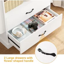 - Durable and Safe – Made from high-quality manufactured wood with a well-structured design, this bookcase includes safety anti-toppling devices to ensure stability. The flower-shaped metal handles on the sliding drawers add a decorative touch and enhance functionality.