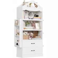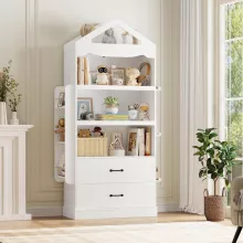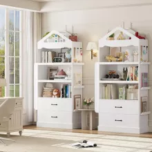 Maximize your child’s space with this 71-inch tall kids bookcase that offers both style and functionality. Designed to meet all your storage needs, this bookcase comes with 9 spacious shelves, 2 wide drawers, and additional side shelves, perfect for organizing books, toys, and other essentials. The charming castle-shaped design not only adds a fun and playful touch to the room but also blends effortlessly into any modern decor. Whether in a playroom, nursery, or study, this versatile bookcase helps create an inviting, organized space for children to store their favorite books, toys, and keepsakes.