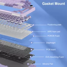 This keyboard isn’t just about looks—it’s engineered for excellence. The innovative gasket mount design offers a cushioned, vibration-free typing experience, reducing fatigue and creating a pleasing acoustic profile. Inside, five layers of premium sound-dampening materials—including IXPE, PORON foam, EVA, and silicone—ensure a quiet, clean sound with each press. The layout offers 83 essential keys in a space-saving format, letting you game or work in comfort without sacrificing desk space.