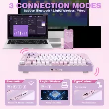 When it comes to flexibility, this wireless keyboard shines. Use Bluetooth to pair with tablets, laptops, or phones on the go. Plug into your desktop with a USB-C cable when you’re settled in. Or go completely wireless with a low-latency 2.4GHz connection — ideal for fast-paced gaming.