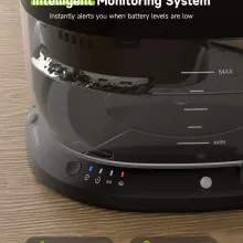 Choose from three intelligent working modes with the press of a button. The built-in sensor detects movement, offering water only when needed—saving energy and water. A smart monitoring system alerts you when battery levels run low, so your pet is never without access to clean water. The pump automatically stops when water levels are too low, ensuring safe use at all times.