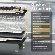 With an ultra-responsive 8K polling rate in wired mode and 1K in wireless, your commands transmit eight times faster than standard keyboards. The actuation point is fully adjustable from 0.1mm to 4.0mm, letting you customize key sensitivity to suit your gaming style or typing needs. Paired with a gasket-mounted build and four layers of sound-dampening foam, the result is a silky-smooth, whisper-quiet feel that’s ideal for both competitive gaming and everyday use.