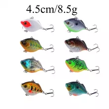 Upgrade your tackle box with this set of 8 VIB fishing lures designed to mimic the natural movement of small baitfish. Measuring 1.8in and weighing 0.3oz each, these hard baits feature 3D lifelike eyes, vivid colors, and a smooth sinking action that makes them irresistible to bass, trout, pike, and many other predatory fish. Each lure is equipped with a #10 high-carbon steel treble hook for a strong, reliable hold once you get a strike.
