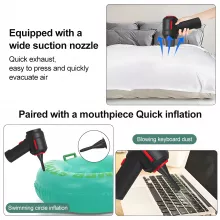 - Three-in-One Design: Vacuum, blow, and pump with one powerful device.