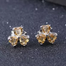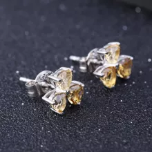 Elegant and Timeless – 925 Sterling Silver Citrine Clover Stud Earrings