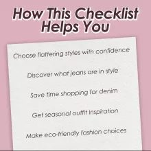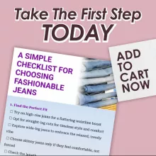 Stop second-guessing your denim purchases and start building a collection that fits, flatters, and feels amazing. Download A Simple Checklist for Choosing Fashionable Jeans today and confidently choose jeans that match your style and lifestyle — all while knowing exactly what jeans are in style this season and beyond.