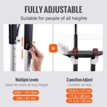 No more struggling with ladders! These stilts offer a height adjustment range of 24 to 40 inches, allowing you to work comfortably at various heights. The 3-position heel bracket accommodates foot sizes from 10.6 to 11.4 inches, ensuring a secure and custom fit for most users.