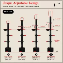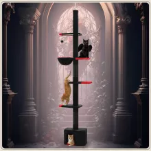 Bring out the wild side of your indoor cat with this stunning Adjustable Height Cat Tree Tower. Designed for homes that blend style with function, this gothic-inspired cat tree features a sleek black and red theme that adds a mysterious, elegant touch to any space. It’s not just a piece of pet furniture—it’s a playground, a nap zone, a lookout point, and a cozy retreat all in one.