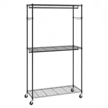 What sets this garment rack apart is its combination of strength, versatility, and practicality. Its ability to adjust the top shelf’s height gives you the flexibility to store different types of clothing, from long dresses to short jackets. The rack is built to withstand heavy loads, making it perfect for storing multiple garments without worrying about sagging or damage. The rolling casters add convenience, letting you easily move the rack to wherever you need it, and then lock it in place for stability. Whether you’re organizing at home or displaying clothing in a boutique, this rack offers everything you need for a clean, organized, and efficient space.