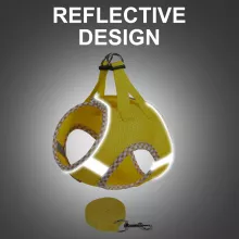This soft, breathable vest-style harness is made from durable polyester blends, with padded interiors that keep your dog comfortable all day. The no-pull design distributes pressure evenly across your dog’s chest, preventing choking or strain. A secure buckle closure makes it easy to put on and take off, while the reflective straps keep your pup visible in low-light conditions. The set includes a matching leash, so you’re ready to go right out of the box.