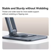 This stand comes with smart features that go beyond the basics. Enjoy smooth, 360-degree rotation for seamless screen sharing or angle switching. The stand rises up to 8.7 inches, providing optimal eye-level viewing to relieve neck and back strain during long sessions. Built with highly-damped dual hinges, it supports up to 22 pounds — strong enough to hold your device steady, even during intense tapping or drawing.