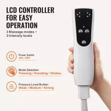 Featuring 3 professional massage modes—Pressing, Kneading, and Shiatsu—this massager mimics human hands to target tension and fatigue. With 3 intensity levels, you can customize your massage to suit your needs, whether you prefer a gentle compression or a deep, rejuvenating experience. The easy-to-use LCD controller lets you adjust the settings with the press of a button.