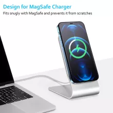 Designed specifically for MagSafe, this stand features a precise silicone groove that perfectly fits your charger (charger not included), ensuring it stays firmly in place. Silicone padding on the base and cradle protects your device and charger from scratches, slips, and wear, while a smart cable cutout helps preserve your charging cable by preventing unnecessary bending and strain.
