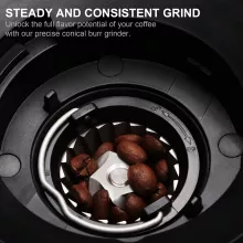 Start every day with the rich aroma and taste of freshly ground coffee. This Automatic Conical Burr Coffee Grinder brings professional-level coffee making to your kitchen with precision, consistency, and ease. Designed to unlock the full flavor of your beans, it offers a range of grind settings so you can enjoy your favorite brews just the way you like them—from strong, velvety espresso to smooth pour-overs and bold French press.