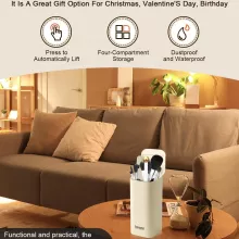 Keep your beauty essentials neat, dust-free, and easy to access with this Automatic Lift-Up Makeup Brush Organizer. Designed for modern spaces and smart storage, this sleek desktop cosmetic holder lifts with a single press, revealing a clean and organized compartment for your brushes, eyebrow pencils, eyeliners, and even office supplies. Whether you’re getting ready for work, heading out for a night, or simply organizing your space, this compact yet spacious storage box brings elegance and order to your routine.