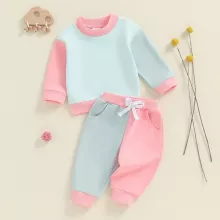Looking for an easy, stylish, and comfy outfit for your little one? This contrast color sweatshirt and pants set is a simple yet smart choice. Add it to your baby’s wardrobe today and enjoy the perfect blend of fashion and function.