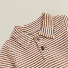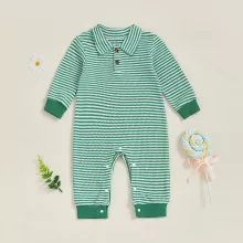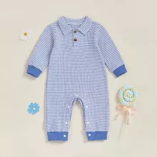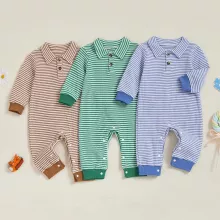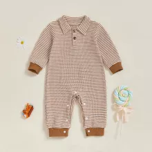 Wrap your baby boy in cozy style with this charming long sleeve striped romper. Designed with a soft turn-down collar and eye-catching stripes, this jumpsuit is a perfect mix of fashion and function for autumn days. Whether it’s a family outing, a day at the park, or simply lounging at home, this outfit keeps your little one snug and looking adorable. With its modern design and comfortable fit, this romper makes dressing up your newborn an absolute joy.