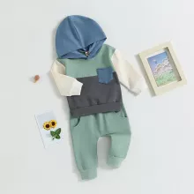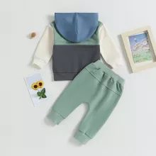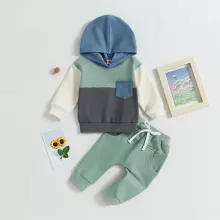 Make your little one the best-dressed tot in town with this adorable 2-piece outfit for baby boys. Designed with cool contrasting colors and crafted from a soft cotton blend, this set includes a long sleeve hoodie sweatshirt and matching pants—perfectly tailored for style and all-day comfort. Whether it’s a crisp autumn walk, a playdate at the park, or just lounging around the house, this set will keep your baby boy looking cute and feeling cozy.