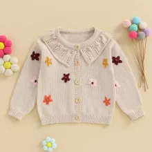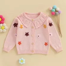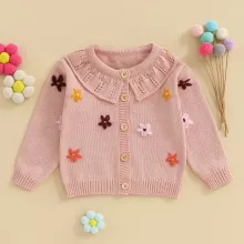 Wrap your baby girl in warmth and style with this adorable knit cardigan, designed to keep her snug during those chilly days. Featuring a soft, breathable fabric and delightful 3D flower accents, this cardigan is more than just a sweater—it’s a statement piece. The button-down front and crew neckline make it easy to wear, while the long sleeves add extra comfort and protection for cooler weather.