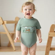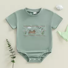 - Fun Embroidery Design: The charming duck and dog embroidery on the front makes this romper stand out, adding a playful touch to your baby’s wardrobe.
