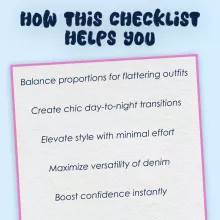 Unlike generic fashion advice, this checklist focuses exclusively on how to style barrel jeans, breaking down each outfit element into simple, clear steps. It’s concise, portable, and instantly applicable—no fluff, just fashion-forward know-how.