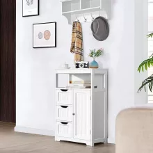 Whether you need extra storage in your bathroom, kitchen, or living room, this freestanding storage organizer is the perfect fit. Its sleek white design and compact size (12″D x 22″W x 34″H) allow it to blend seamlessly into any room while offering much-needed organization. The adjustable shelf is perfect for a personalized setup, making it suitable for storing towels, toiletries, kitchen essentials, and even decorative items.