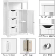 - Multiple Storage Spaces: Enjoy generous storage with two enclosed cabinet spaces and one open compartment. Perfect for holding towels, books, vases, magazines, alarm clocks, and other small items.