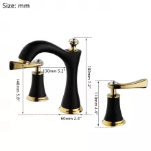 Don’t settle for ordinary when you can have extraordinary. Add this black and gold 3-piece bathroom faucet set to your cart now and elevate your bathroom experience. With its stunning finish, modern design, and exceptional durability, this faucet is sure to be the highlight of your space. Experience the perfect blend of beauty and function today!