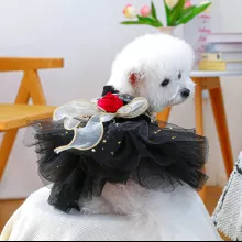 This dog dress is made with breathable mesh and delicate tulle, making it ideal for warm autumn months. The bodice is crafted with soft black velvet-like fabric, gently hugging your dog’s chest without restricting movement. A shimmering puff skirt adds a fairy-tale finish to the look, while the solid black color keeps it sleek and versatile.
