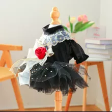 Turn heads on every walk with this stunning Black Mesh Velvet Rose Dog Dress — a perfect blend of elegance and comfort for your stylish small dog. Whether it’s a sunny stroll, garden party, or photo session, your pup will be the belle of the ball in this eye-catching outfit.