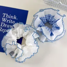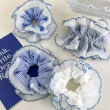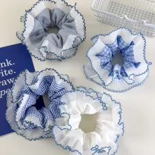 Made with stretchable elastic and soft, breathable materials, it’s gentle on hair while delivering a secure hold. The layered lace detailing and timeless blue gingham print make this scrunchie more than just functional — it’s a statement of style and softness, ideal for women and girls who love delicate yet noticeable accessories.