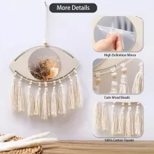 - Unique Design: Eye-shaped frame with boho macrame and soft tassels for visual impact.