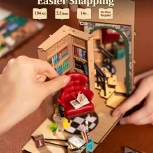 Step into a world of charm and creativity with this exquisite Bookstore with Light. A perfect blend of art and craftsmanship, this DIY wooden assembly toy is not just a toy, but a stunning piece of décor that will add a whimsical touch to any room. Ideal for home décor enthusiasts, it’s the perfect gift for anyone who loves intricate models, including girls, housewives, and collectors. Whether you’re looking to brighten up your bookshelf or give a thoughtful present, this bookstore will captivate hearts with its enchanting design and soft lighting. It’s more than just a decorative piece; it’s an experience that will bring joy for hours as you assemble it.