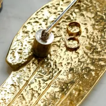 Handcrafted from eco-friendly brass, this storage tray is designed to hold your most precious items, such as jewelry, small trinkets, or even candies. Its durable construction and intricate detailing make it a true conversation starter, perfect for your bedroom, living room, or even as a chic accent piece on your desk.