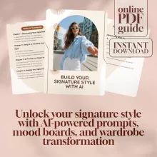 Ready to define your one-of-a-kind look and finally feel confident in your wardrobe choices? Build Your Signature Style With AI is a digital guide designed to help you unlock your personal style DNA with the power of artificial intelligence. Whether you’re exploring fashion for the first time or refining your aesthetic, this guide makes it simple, fun, and inspiring to create a wardrobe that feels uniquely yours. Perfect for fashion lovers, creators, entrepreneurs, or anyone who wants to feel effortlessly put together, this downloadable resource blends practical style coaching with cutting-edge AI tools to bring your vision to life.