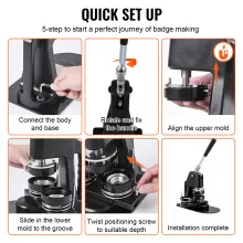 Engineered with durable aluminum alloy and ABS-coated for extra toughness, this machine is built to last. The ergonomic handle and smooth mechanical bearing ensure effortless pressing, while the smart mold alignment system improves accuracy and badge-making success. It comes with two interchangeable molds — 1 inch and 2.25 inch — and all the accessories you need to make 500 custom badges in two sizes.