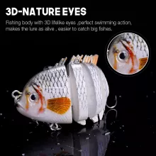 Catch more fish and enjoy every fishing trip with this high-performing 6-segment multi jointed swimbait. Designed to mimic the natural swimming action of real baitfish, this lure is perfect for anglers who want to increase their chances of hooking bass, pike, trout, walleye, and more. Its 3D lifelike eyes, realistic scale patterns, and vibrant colors make it irresistible to predators in any water condition. With our special Buy 2 Get 1 Free deal, you can stock up and always be ready for your next big catch.