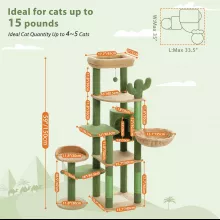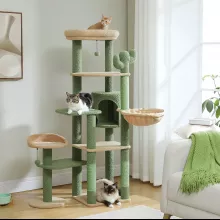 This Cactus Tall Cat Tree is perfect for cats of all sizes, especially large and active cats. With its spacious design, it can accommodate 4-5 adult cats simultaneously, giving them plenty of room to play, scratch, and rest. The unique cactus theme adds a fun, quirky touch to your home while being a functional piece of furniture your cats will adore.