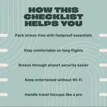 Unlike generic packing lists you’ll find online, the Carry-On Essentials Checklist is designed with real travelers in mind. It balances absolute necessities with pro-level extras that make flights more comfortable, organized, and stress-free. No fluff, just everything you need in one smart, easy-to-follow guide.