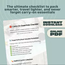 Don’t let forgotten essentials ruin your trip. Download the Carry-On Essentials Checklist today and pack like a pro. Perfect for frequent flyers, casual vacationers, or anyone who loves organized, stress-free travel—your smoothest journey starts here.