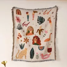 Brighten up your living space with the Fun Woven Tapestry Throw Blanket. Designed with playful charm, this blanket features vibrant cartoon-style illustrations that instantly add personality to any room. With eye-catching details like mermaids, flamingos, bananas, and flowers, it’s more than just a blanket — it’s a statement piece that brings joy and creativity into your home.