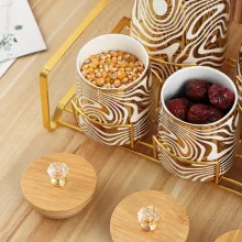 The ceramic containers are crafted with high-quality materials that are both durable and safe for food storage. The snug-fitting wooden lids help preserve the aroma and freshness of your seasonings, while the minimalist metal stand adds a decorative flair and keeps everything neatly in place. With a clean, modern look, these jars easily blend into any kitchen décor—from rustic farmhouse to contemporary spaces.