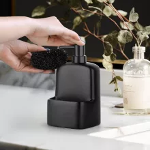 Declutter your sink space with the elegant and functional Ceramic Soap Dispenser with Built-In Caddy. Designed for both beauty and practicality, this matte black ceramic pump combines a modern look with everyday convenience. Holding up to 15 oz. of liquid soap, this dispenser is perfect for busy kitchens or sleek bathrooms where you need both form and function.