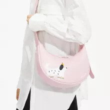 The smooth split leather exterior gives it a polished, upscale feel, while the synthetic leather lining adds durability without compromising on comfort. Designed in a unique half-moon shape, this piece stands out in all the right ways. Compact yet spacious, it offers just the right amount of room for your daily must-haves — from your phone and wallet to a few beauty essentials.