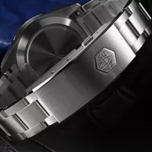 The new fly adjustable clasp provides a custom fit, ensuring comfort no matter how long you wear it. The sapphire crystal glass, along with the robust stainless steel construction, guarantees that this watch will withstand the test of time, while its 100-meter water resistance gives you peace of mind during everyday activities.