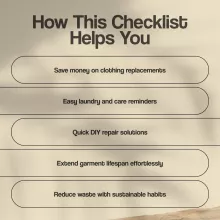 Unlike lengthy eBooks or complicated garment care manuals, this digital checklist is concise, practical, and designed for quick reference. With step-by-step guidance that you can use immediately, it makes clothing care and repair approachable and stress-free.